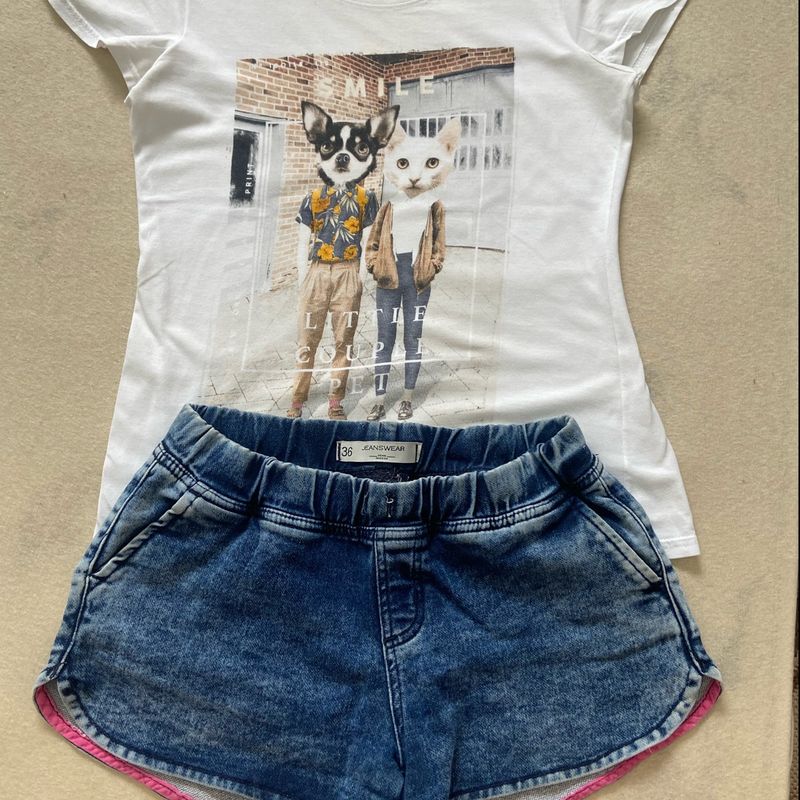 Conjunto Short Jeans e Camiseta Branca Malwee Blusa Feminina