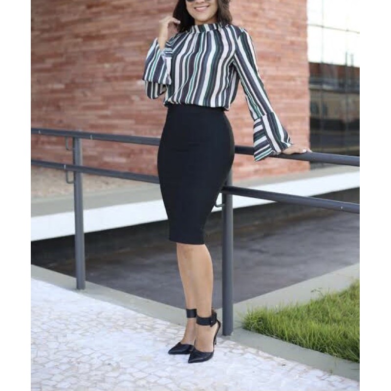 Saia Midi Reta Social Casual Preta Two Way Zas Traz Confec es