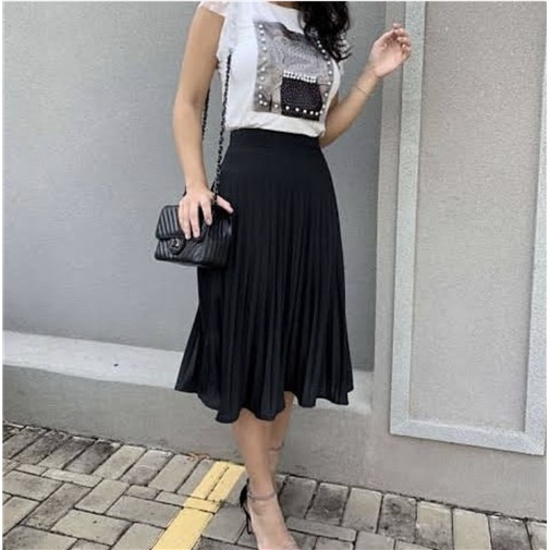 Saia clearance crepe plissada, Saia Midi Plissada em Crepe Moda Japa Store clearance