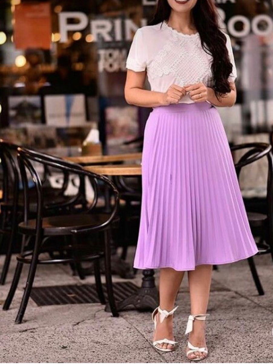Saia plissada Lil s Saias longas roxas Ideias fashion Looks