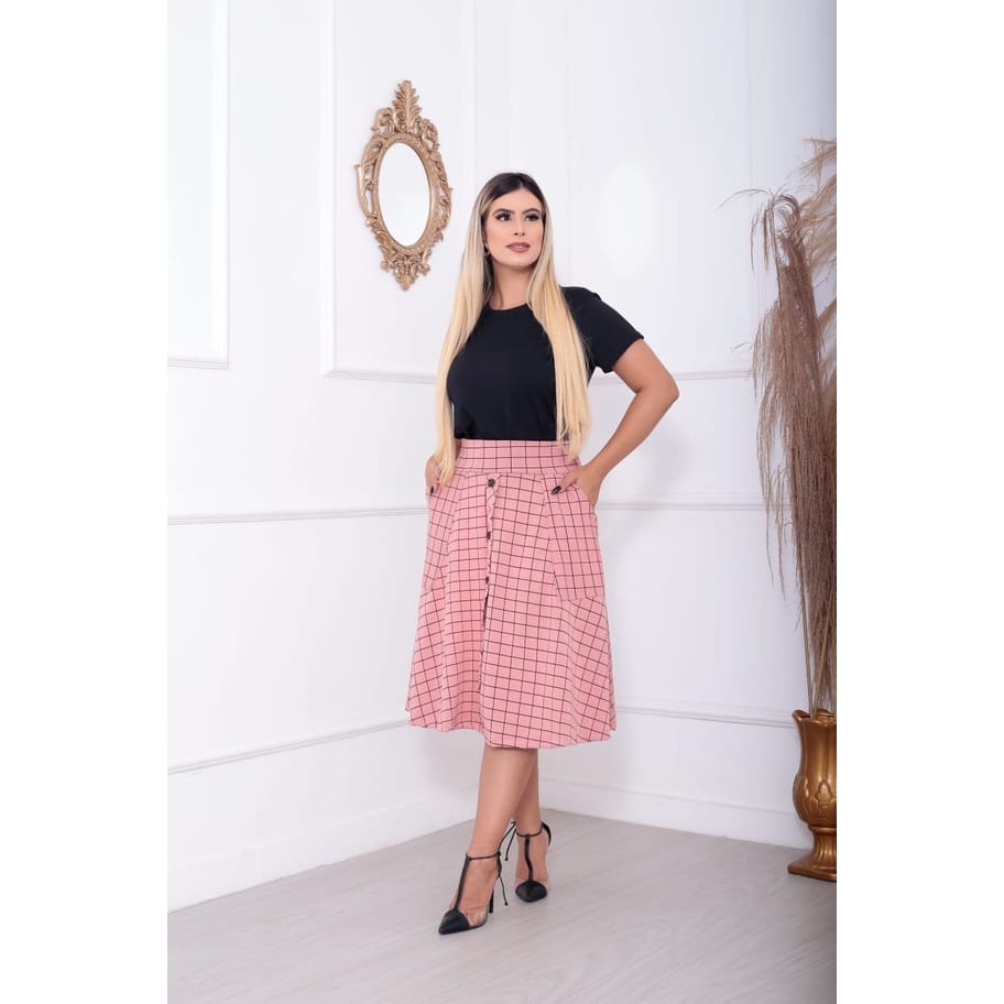 Saia Midi Cintura Alta Estampada com Bolso Atacado Goi nia