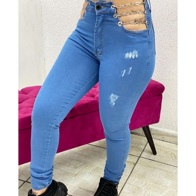 Calca jeans com clearance correntes