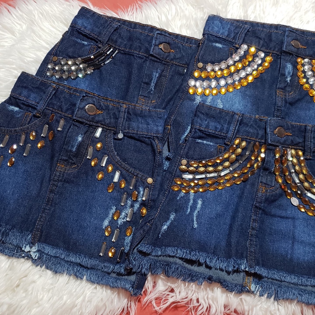Saia jeans bordada clearance pedraria