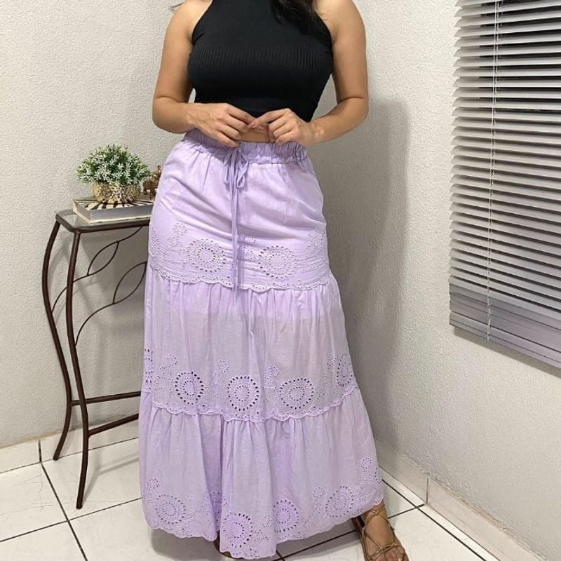 Conjunto de saia longa todo em lese simplesmente perfeito