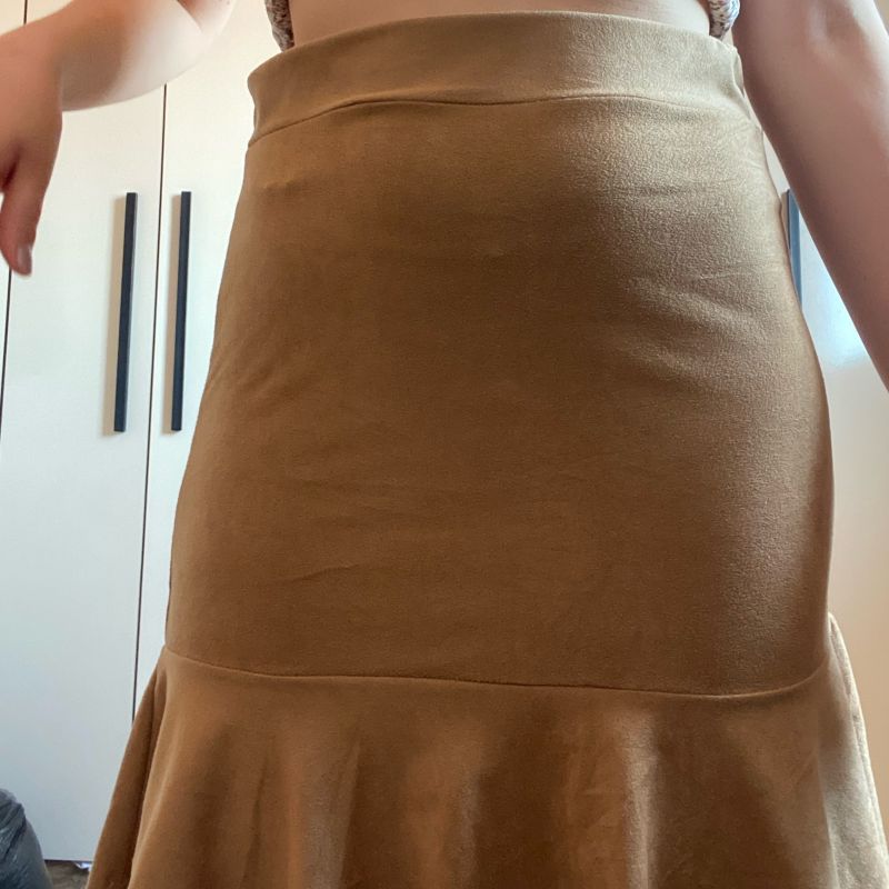 Saia em Suede Marrom Claro com Babado Saia Feminina Loule Usado