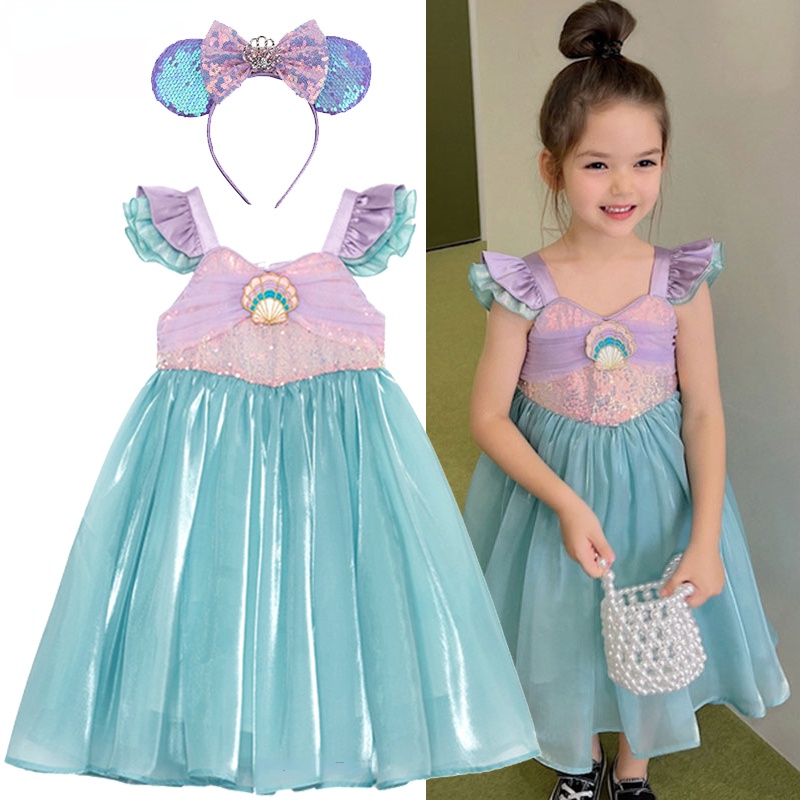LMAA Vestido De Ver o Pequena Sereia Menina Ariel Princesa Festa
