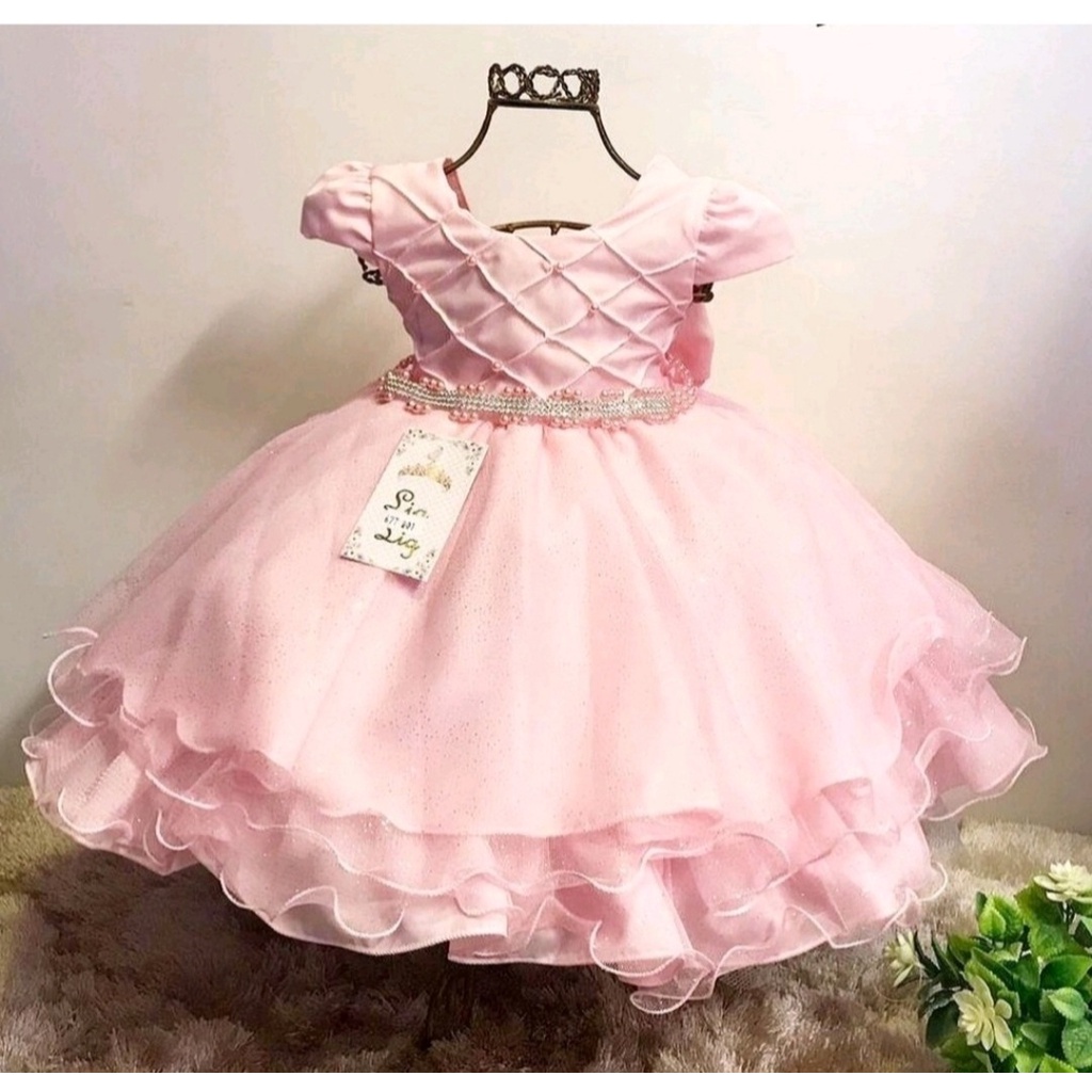 Vestido Festa Anivers rio Princesa menina beb Batismo cor rosa tam 1 ano