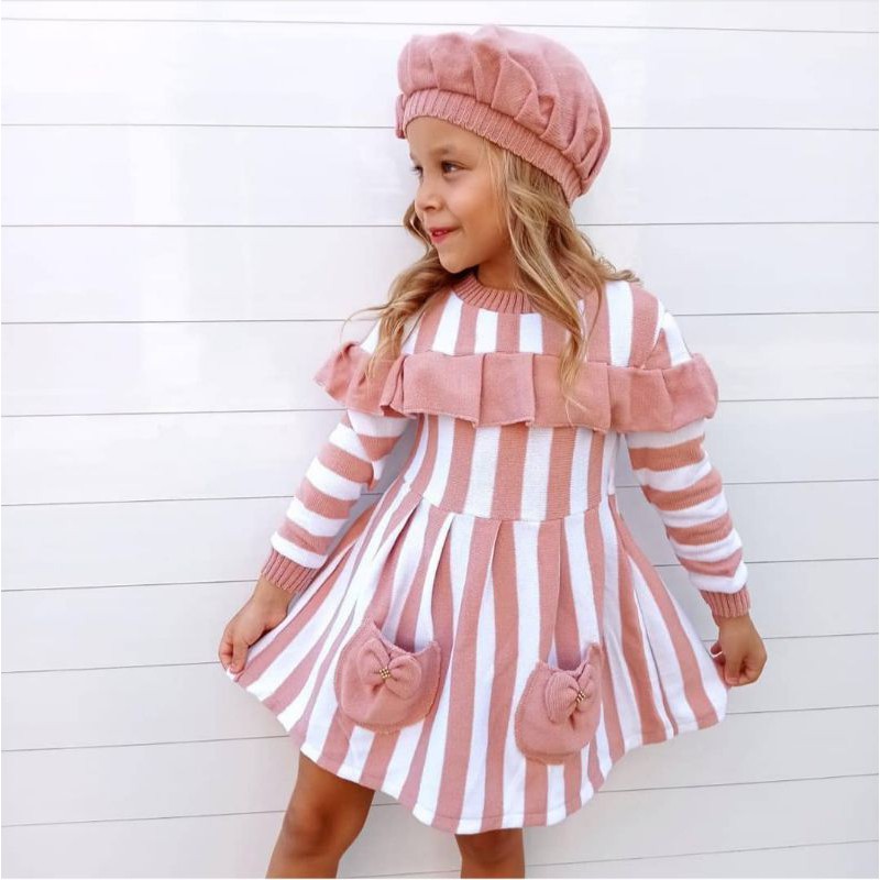 Vestido Infantil Manga Comprida Roupa Frio Menina C cinto