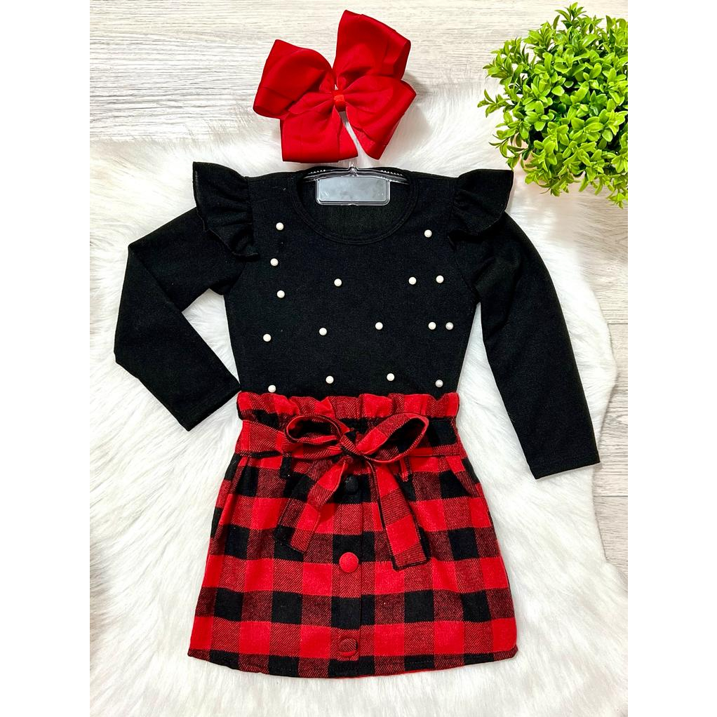 Conjunto infantil menina Saia E Blusa Roupa de Frio Feminina Moda
