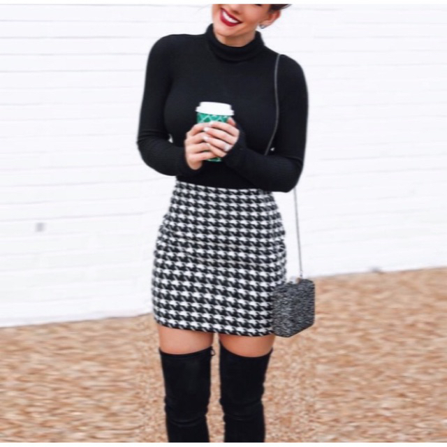 Kit 2 pe as saia Xadrez pied d poule e blusa gola alta inverno