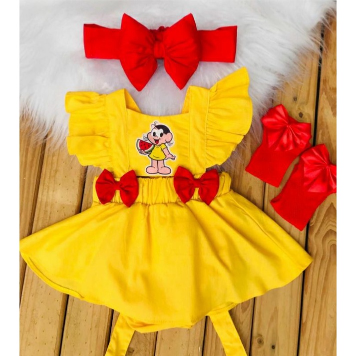 Roupa da magali clearance para bebe, Conjunto Beb Turma da M nica Magali com Faixa de Cabelo clearance