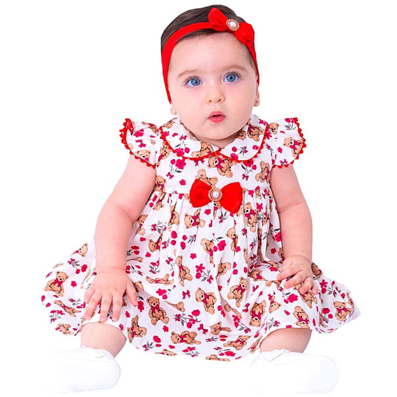 Vestido para Beb Menina Infantil Luxo com Tiara 100 Algod o 2 18 Meses