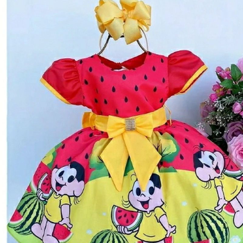 Vestido De Festa Infantil Magali Melancia Turma Da Monica