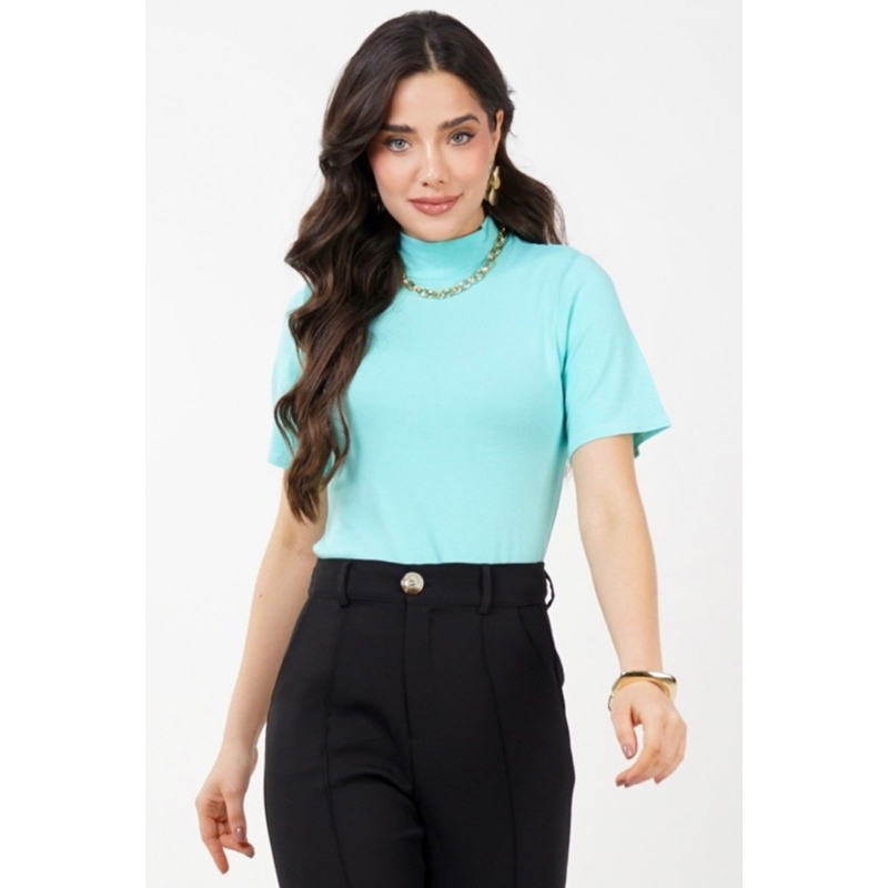 Camisa feminina azul clearance tiffany, Camiseta Tshirt Tee Gola Alta Feminina B sica Zara Tend ncia Azul Tiffany clearance