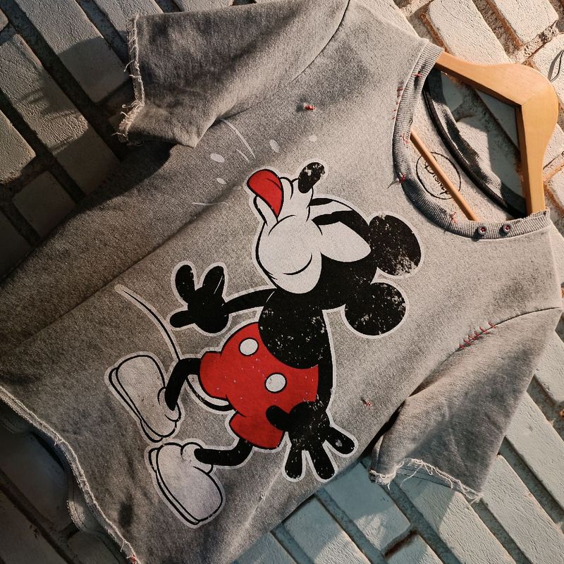 Camisa Camiseta Mickey Destroyed em Moletom Camiseta Feminina