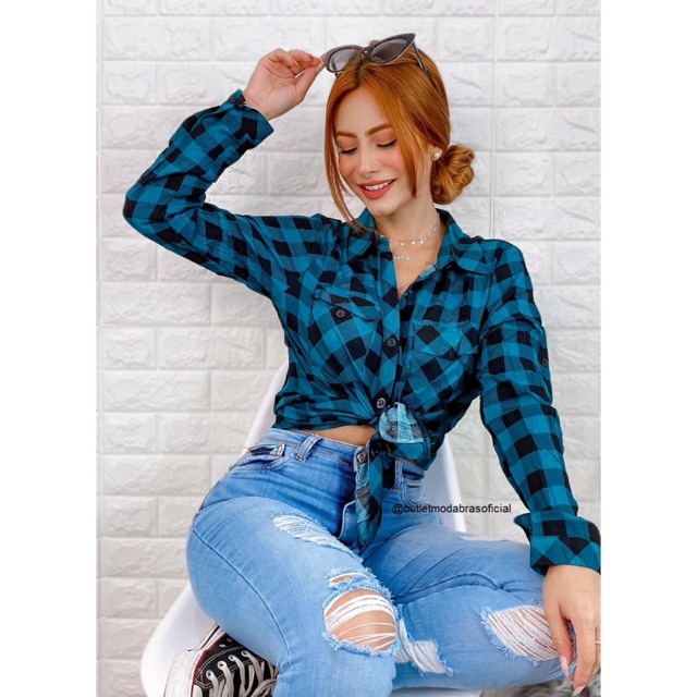 Camisa Xadrez Azul Feminina Flanela em Promo o na Shopee Brasil 2024