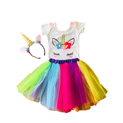 Tutu Saia Tule Kit Unicornio Tiara E Saia Colorida Infantil