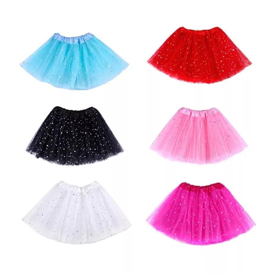 Saia Rodada De Tule Tutu Com Glitter Carnaval Festa Adulto