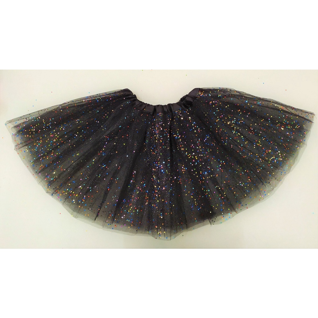 Saia em Tule preto com brilho sortido 30cm Mod 257 01