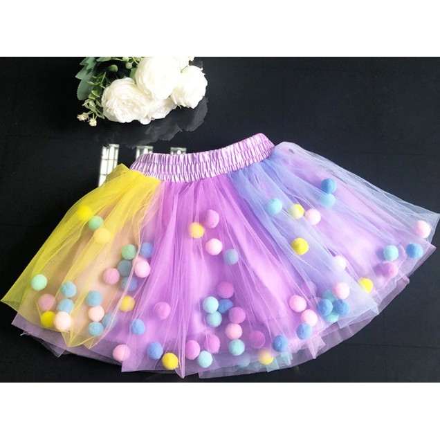 Saia de Tule com Pompom Saia Colorida Infantil beb crian a menina