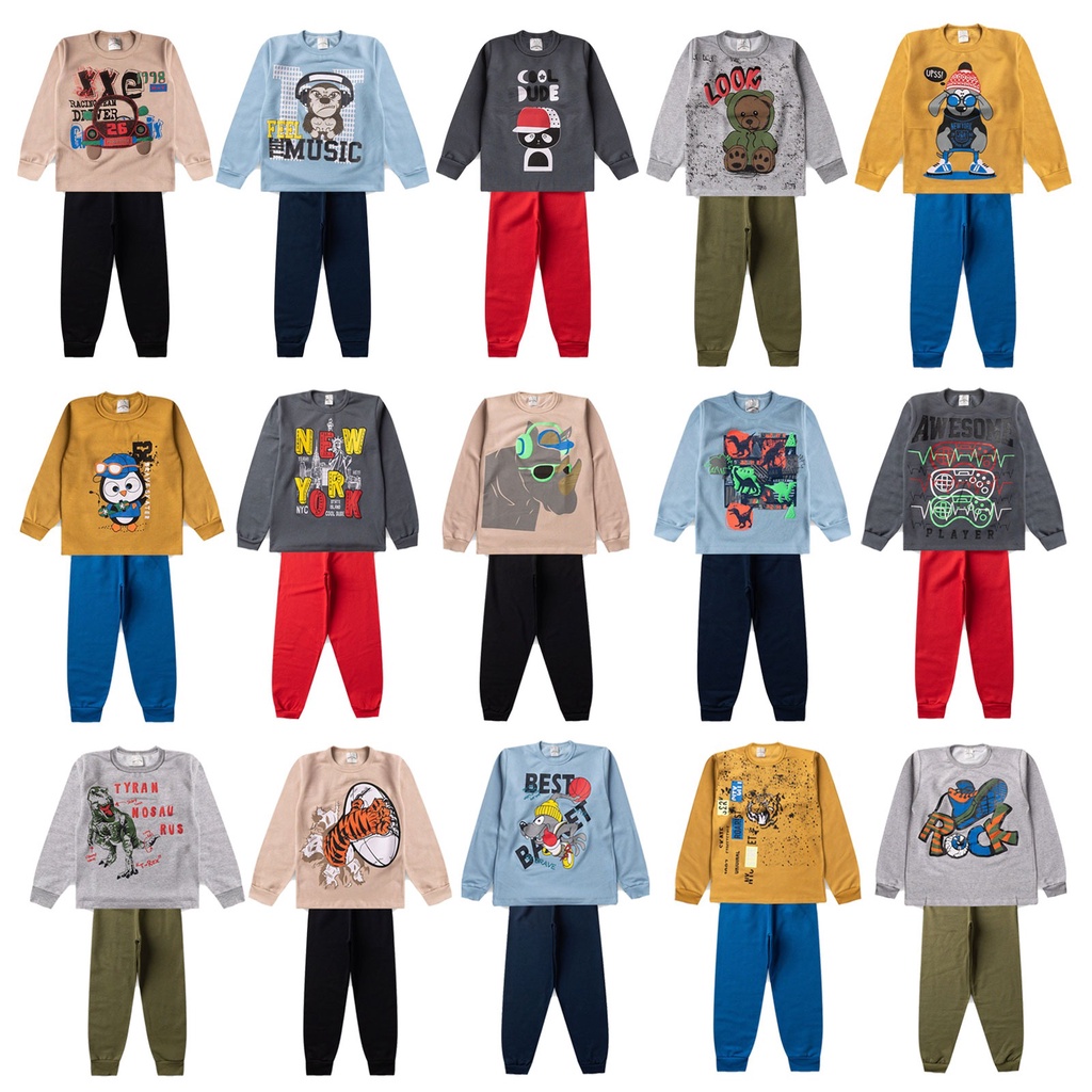Kit 6 Pe as de Roupa De Frio Moletom Flanelado Conjunto Masculino Infantil Menino 3 Casaco E 3 Cal a Promo o Barato Atacado Revenda Inverno Estampas