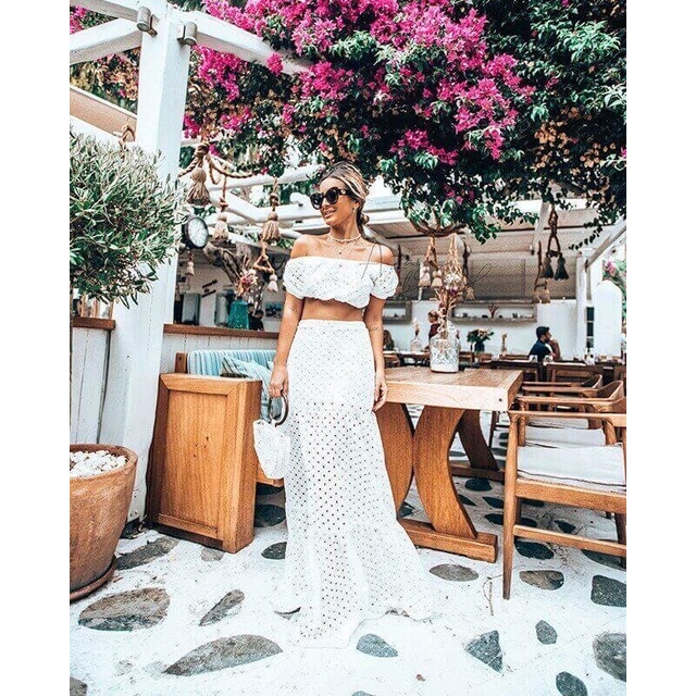 CONJUNTO SARA CROPPED E SAIA LONGA LAISE BRANCO Marina Bonita