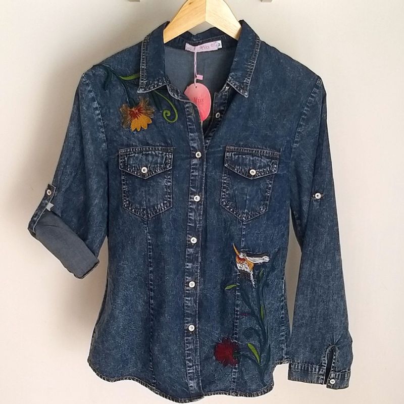 Camisa Jeans Feminina Bordados Camisa Feminina Nunca Usado 72781495 enjoei