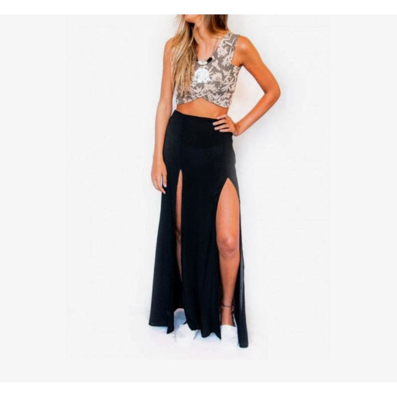 Saia Longa Preta de Fenda Dupla em Viscolycra Radiosa Tamanho nico