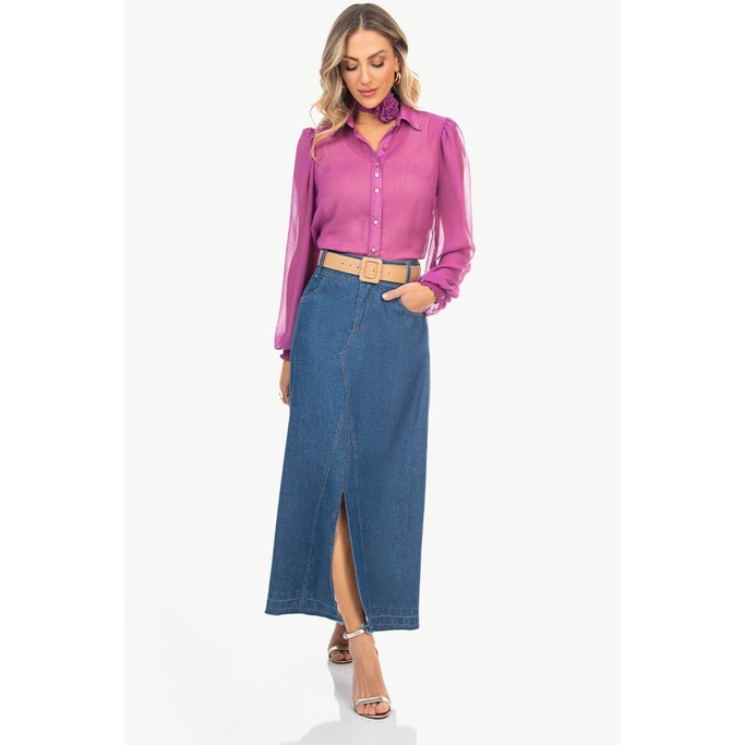 Saia Jeans Longa com Bot es Frontais Via Tolentino The Place Modas