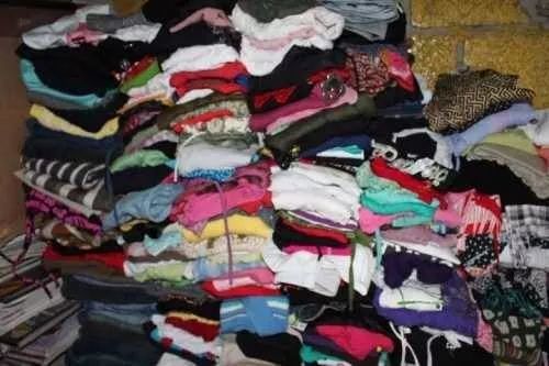 Lote de roupas mistas para brech Bazar usadas com 60 pe as Primeira linha revenda por 25 00 a 60 00 Reais