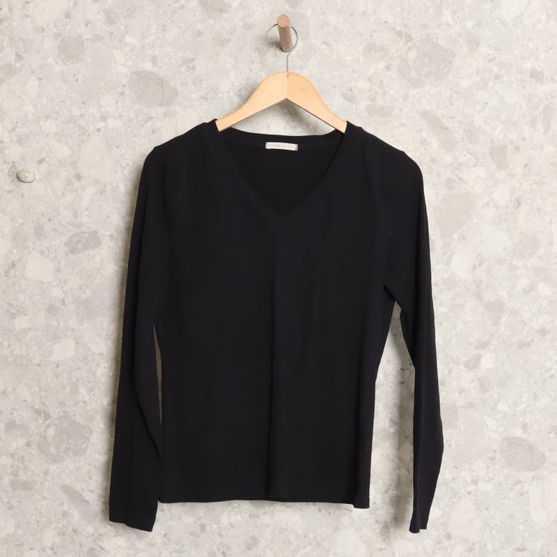 Blusa B sica Manga Curta em Meia Malha com Decote V Preto Lojas Renner
