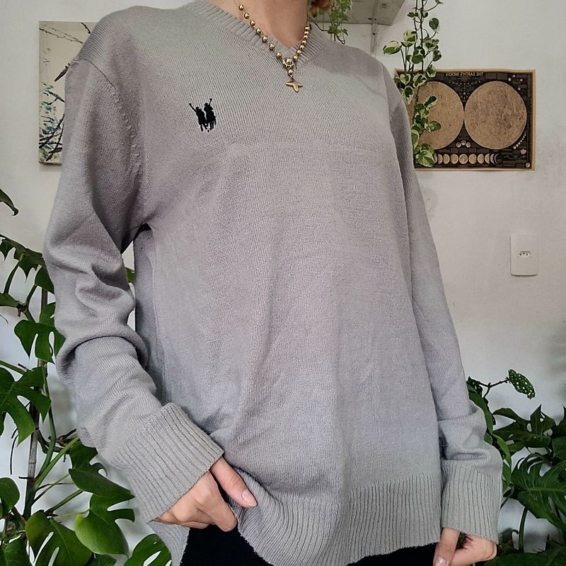 Su ter Blusa de Tric Cinza Polo Wear Blusa Feminina Polo Wear