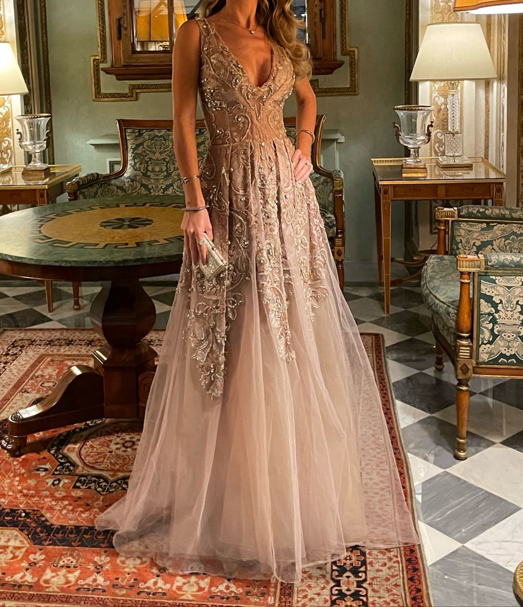 Vestido com tule clearance para festa, Vestido Tule Nude Todo Bordado Vestido de Festa Feminino Patbo Usado 72776433 enjoei clearance