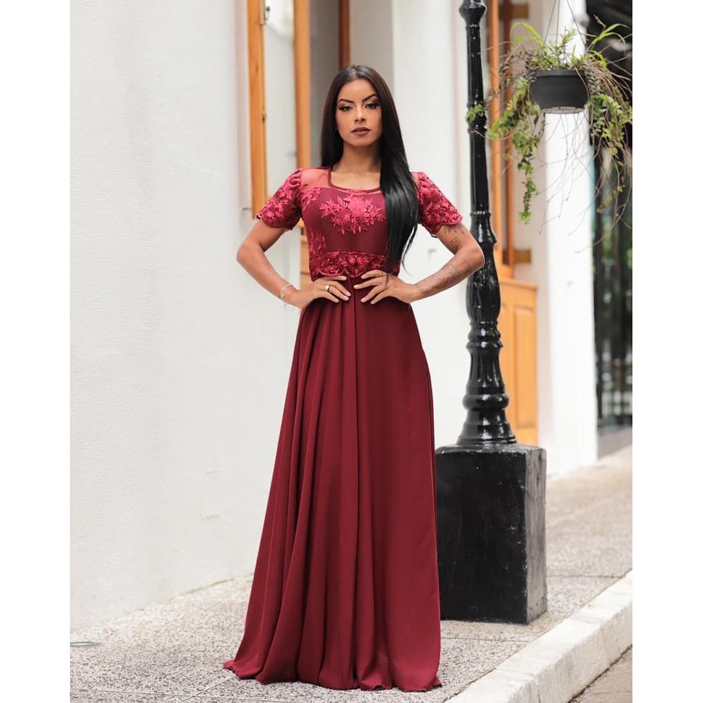 Vestido Longo Festa Tule Bordado Viamoda Feminina