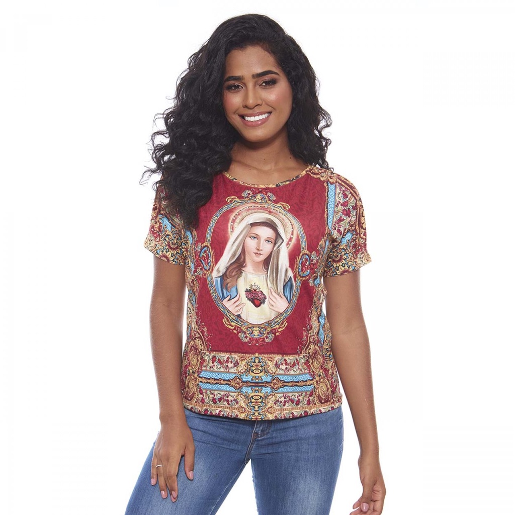 Blusa gape Imaculado Cora o De Maria Estampada Vermelha Feminina