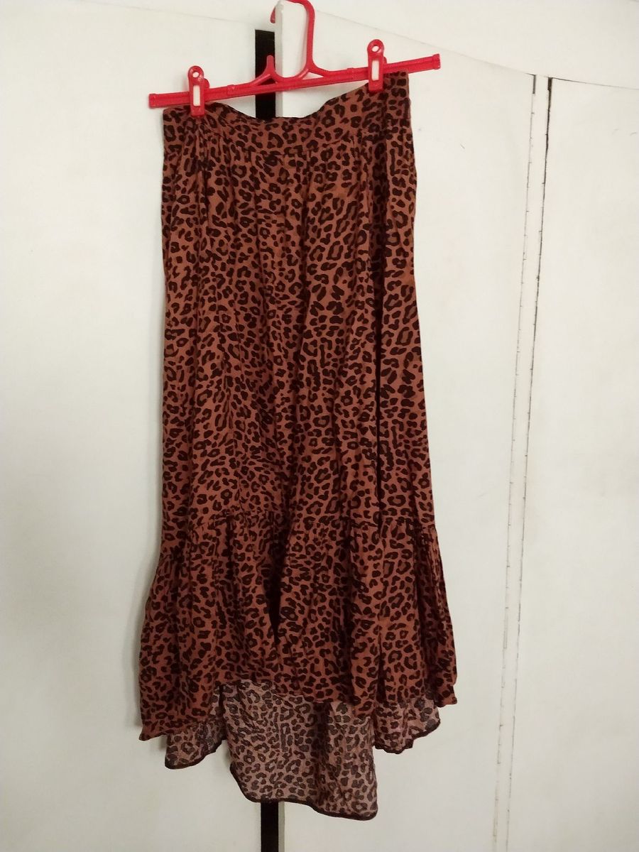 Saia New Midi em Viscolinho com Fenda e Estampa Animal Print On a