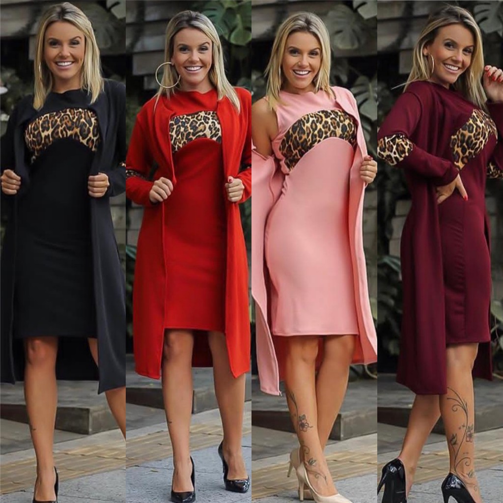 Vestido Com Cardigan Longo Conjunto Feminino