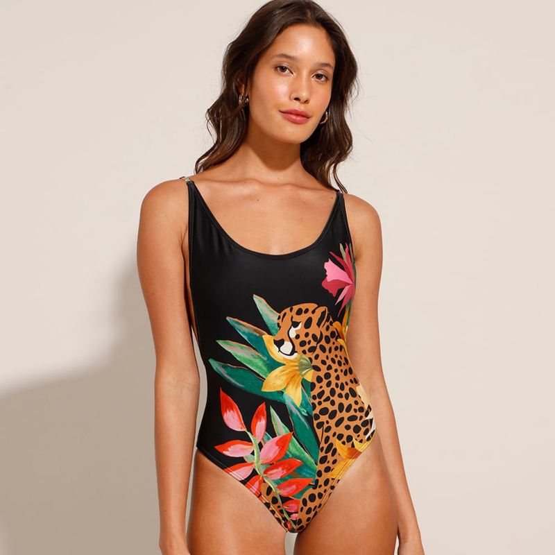 Mai Preto Estampado com On a Bojo Remov vel Moda Praia Feminina C Amp A Nunca Usado 82714894 enjoei