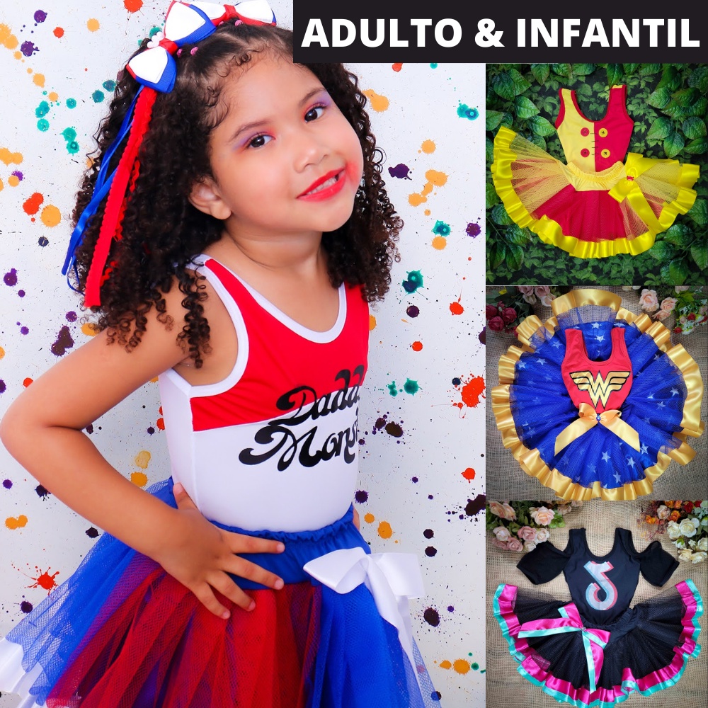Fantasia Adulto e Infantil com saia de tule de Carnaval