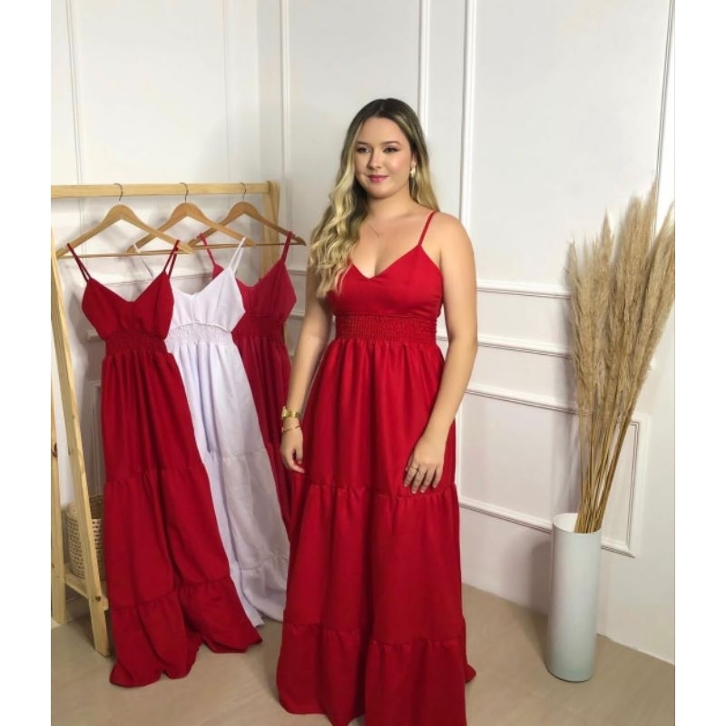 Vestido longo forrado na cor vermelho para ir em casamento e festa e natal