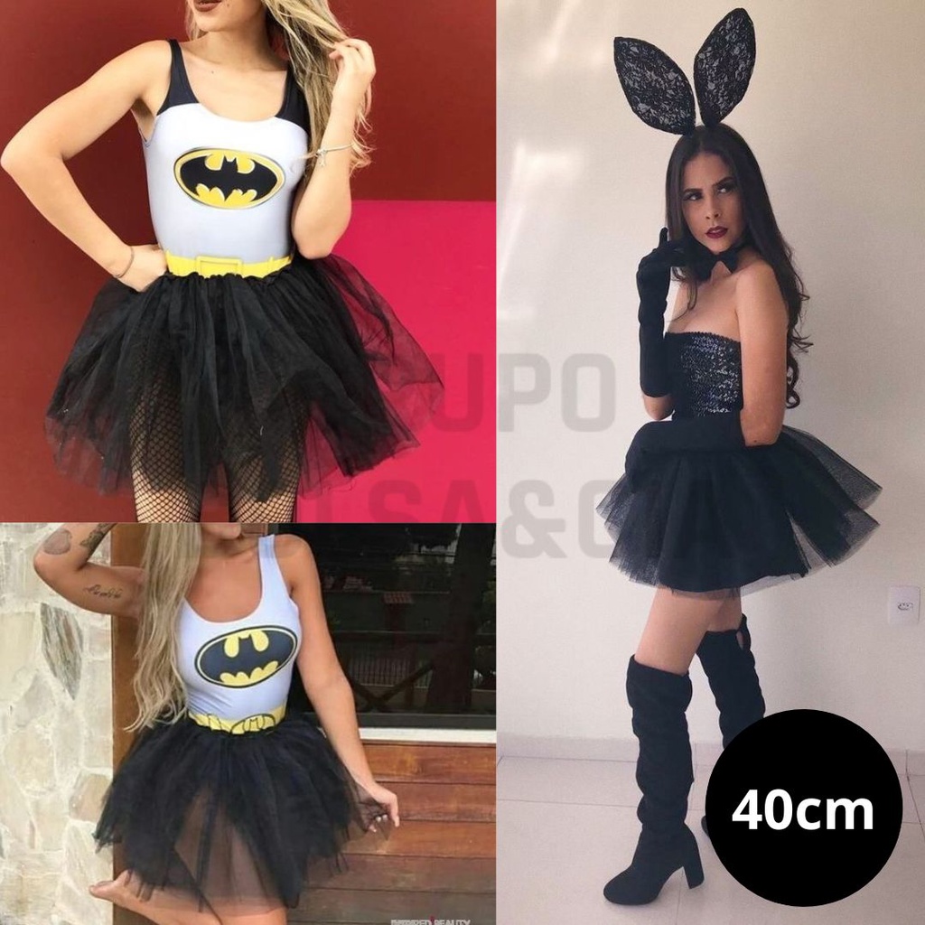 Fantasia saia tule clearance preta, Saia Tule Preta Brilho Fantasia Bruxa Halloween Feminina Lux clearance