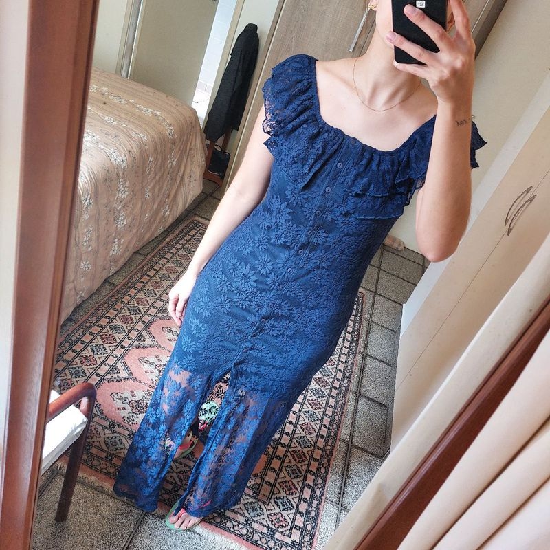 Vestido Comprido Azul Marinho em Renda Vestido Feminino Nunca