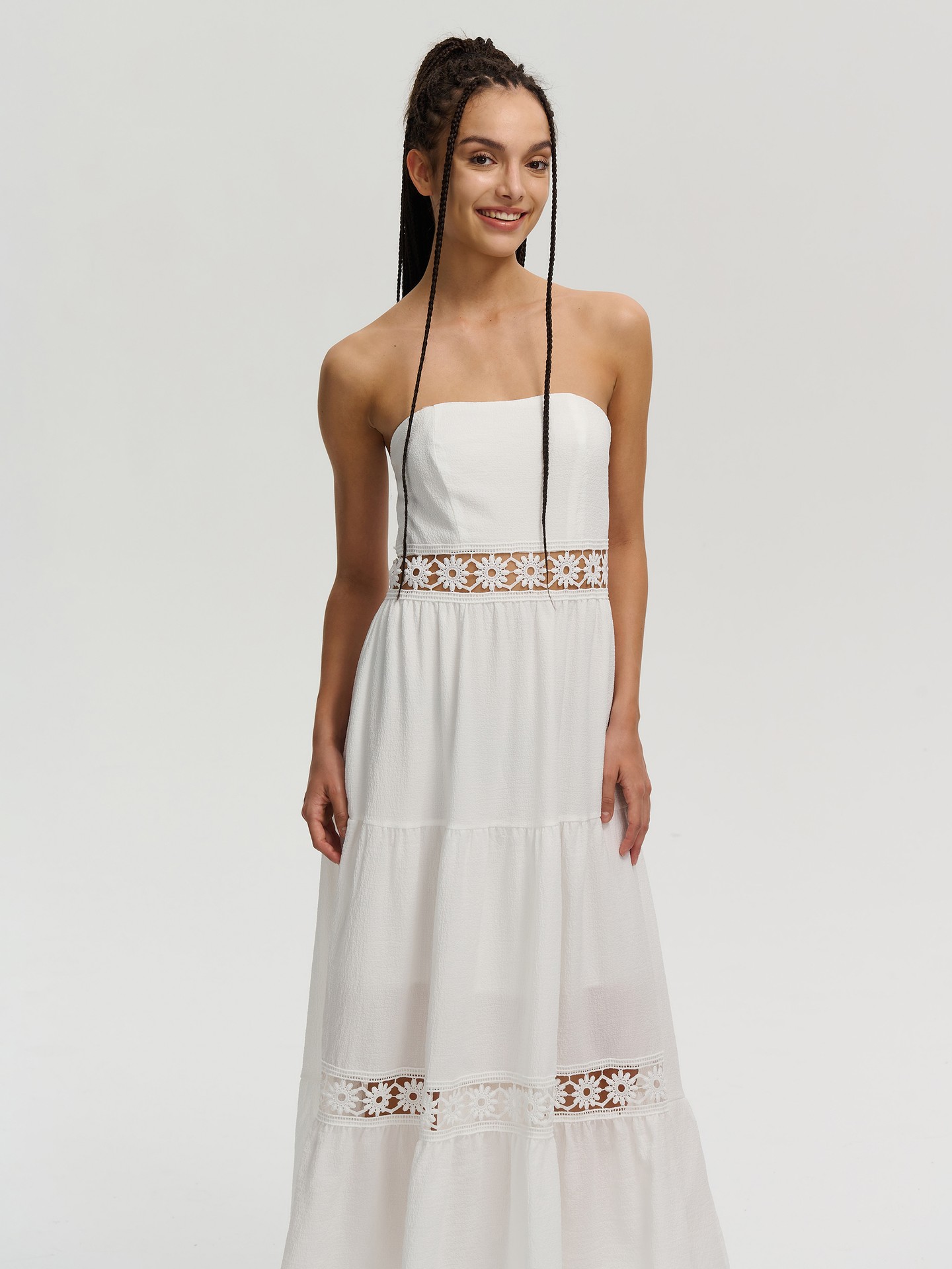 Vestido clearance comprido renda, Vestido tubinho comprido de poli ster barra de renda clearance