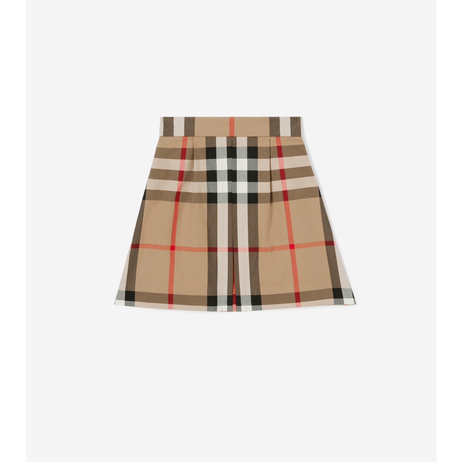 Saia plissada de algod o em Check Bege cl ssico Crian as Burberry oficial