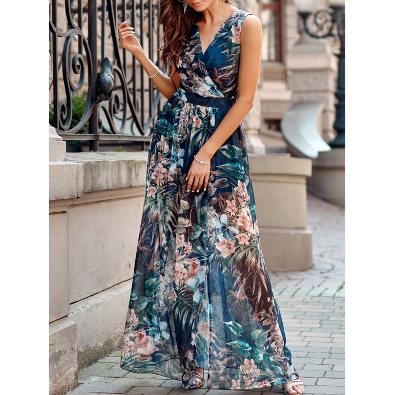 Vestidos de praia clearance para senhoras, Chiffon Ver o Imprimir Vestido Longo Mulheres Elegantes Senhoras Moda Boho Praia Maxi Vestidos Sexy Mulher Divis o Fora Do Ombro clearance