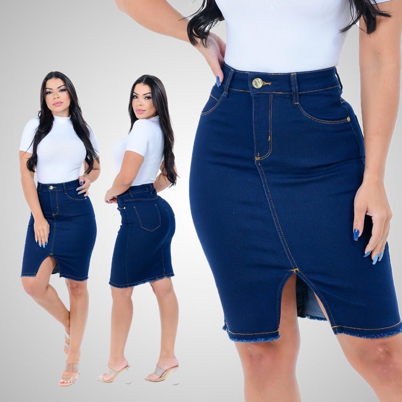 Saia jeans com clearance corte na frente