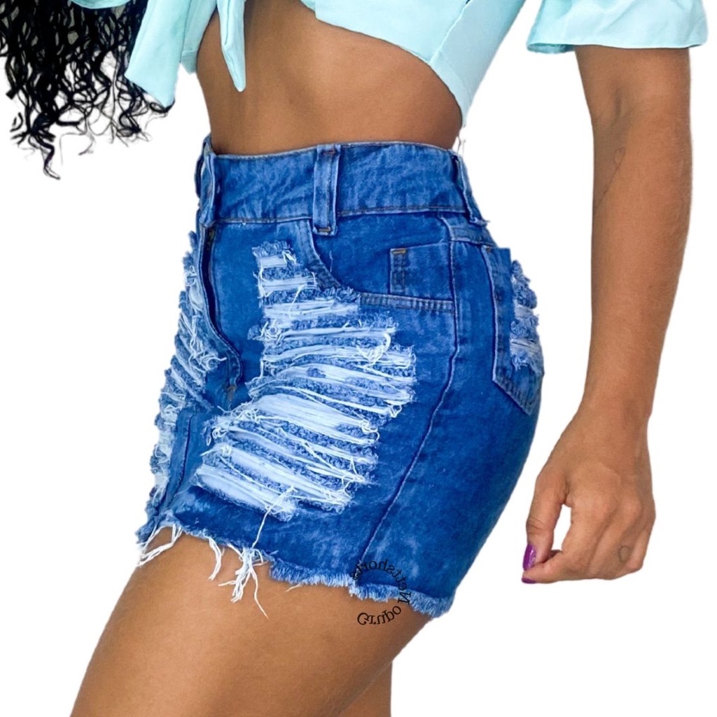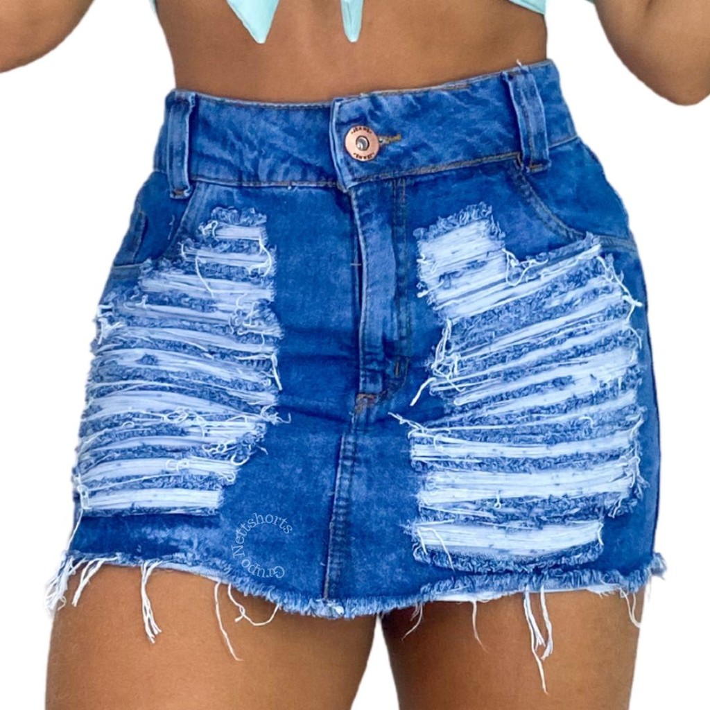 Saia Hot Pants Jeans Luxo Destroyed Feminina Cintura Alta Shopee