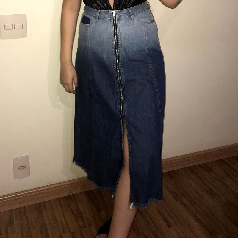 Saia Midi Jeans Saia Feminina Aquamar Usado 71189956 enjoei