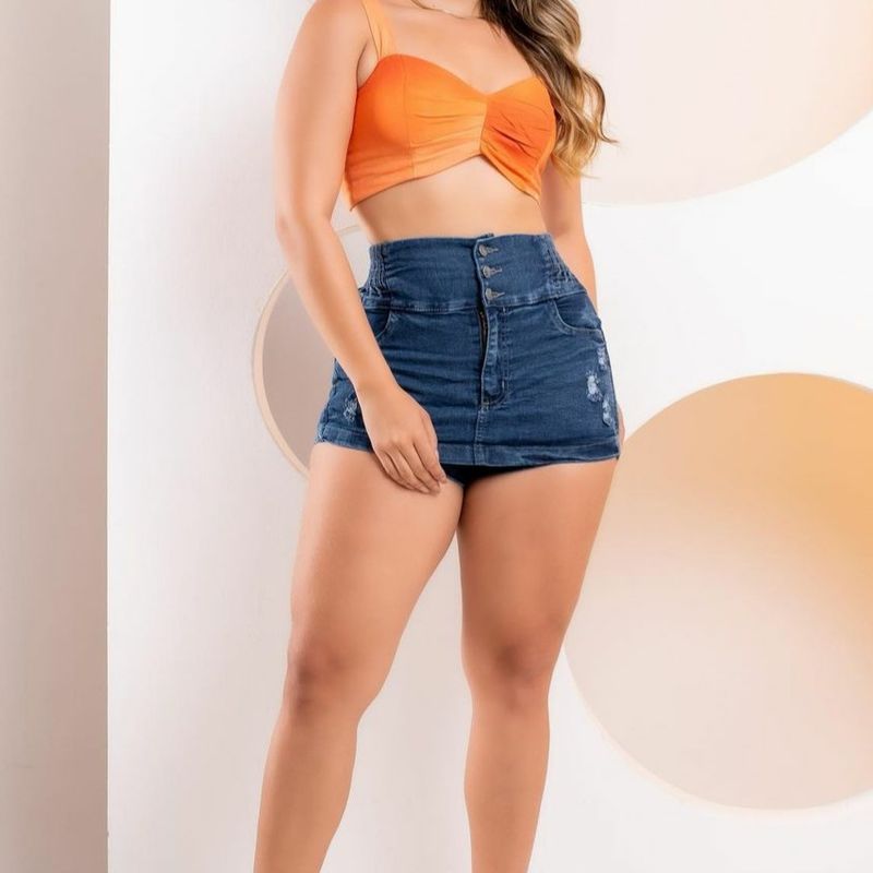 Short Saia Jeans com Lycra Shorts Feminino Q Chique Jeans Nunca