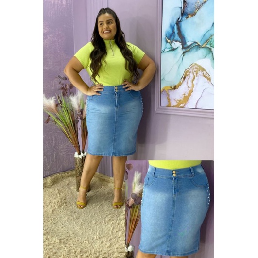 Saia jeans tamanho clearance 54, Saia Jeans Plus Size Com Lycra Com La o Tamanhos 44 Ao 54 clearance